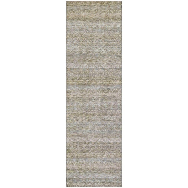 Mayfield Premium Machine Washable Abstract AMF2105 Khaki 2 ft. x 7 ft. Runner Rug