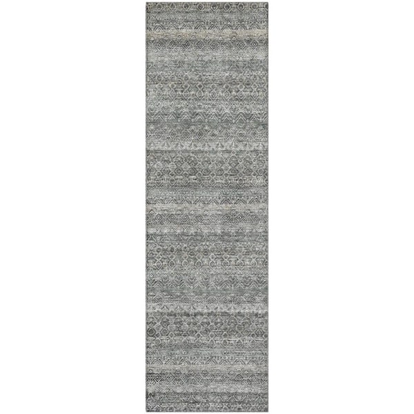 Mayfield Premium Machine Washable Abstract AMF2105 Pewter 2 ft. x 7 ft. Runner Rug