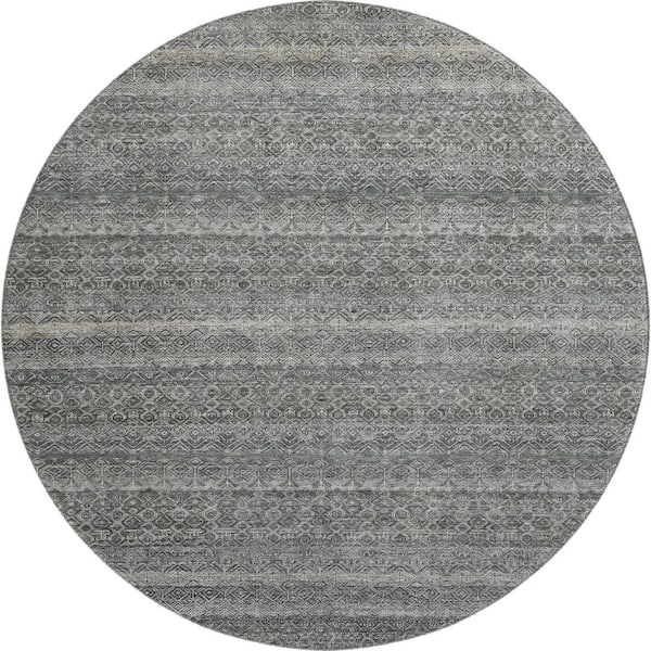 Mayfield Premium Machine Washable Abstract AMF2105 Pewter 8 ft. x 8 ft. Round Rug