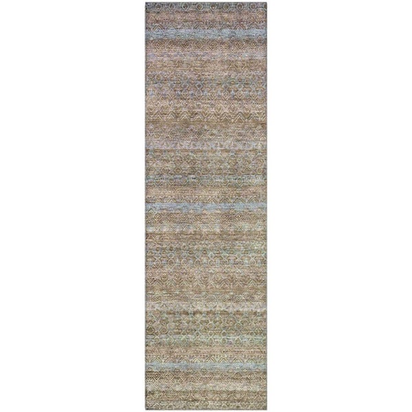 Mayfield Premium Machine Washable Abstract AMF2106 Brown 2 ft. x 7 ft. Runner Rug