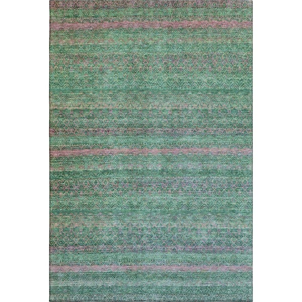 Mayfield Premium Machine Washable Abstract AMF2106 Green 10 ft. x 14 ft. Area Rug