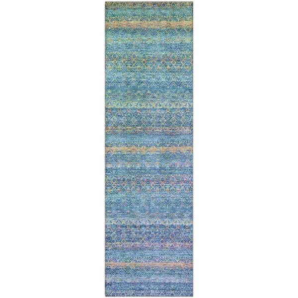 Mayfield Premium Machine Washable Abstract AMF2106 Teal 2 ft. x 7 ft. Runner Rug