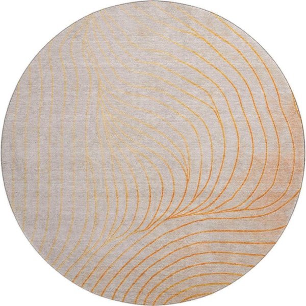 Mayfield Premium Machine Washable Abstract AMF2107 Orange 8 ft. x 8 ft. Round Rug