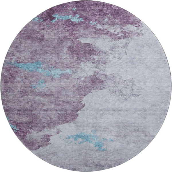 Mayfield Premium Machine Washable Abstract AMF2108 Lavender 8 ft. x 8 ft. Round Rug