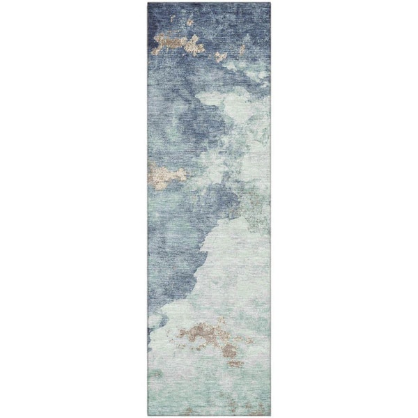 Mayfield Premium Machine Washable Abstract AMF2108 Seafoam 2 ft. x 7 ft. Runner Rug