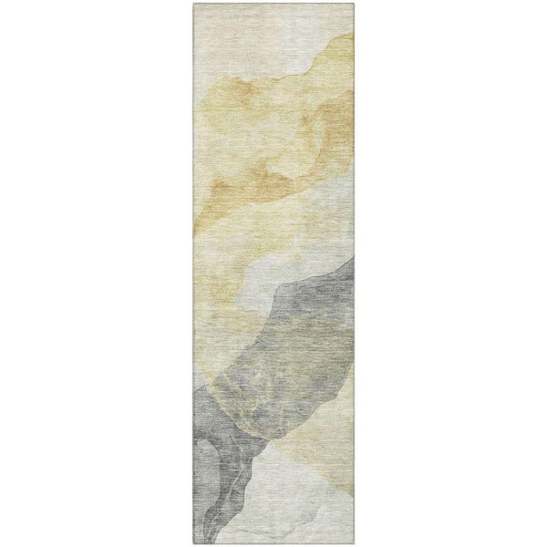 Mayfield Premium Machine Washable Abstract AMF2109 Beige 2 ft. x 7 ft. Runner Rug