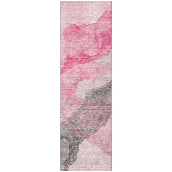 Mayfield Premium Machine Washable Abstract AMF2109 Blush 2 ft. x 7 ft. Runner Rug