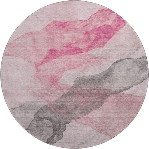 Mayfield Premium Machine Washable Abstract AMF2109 Blush 8 ft. x 8 ft. Round Rug