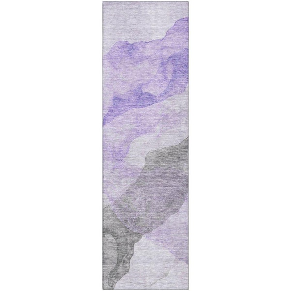 Mayfield Premium Machine Washable Abstract AMF2109 Lavender 2 ft. x 7 ft. Runner Rug