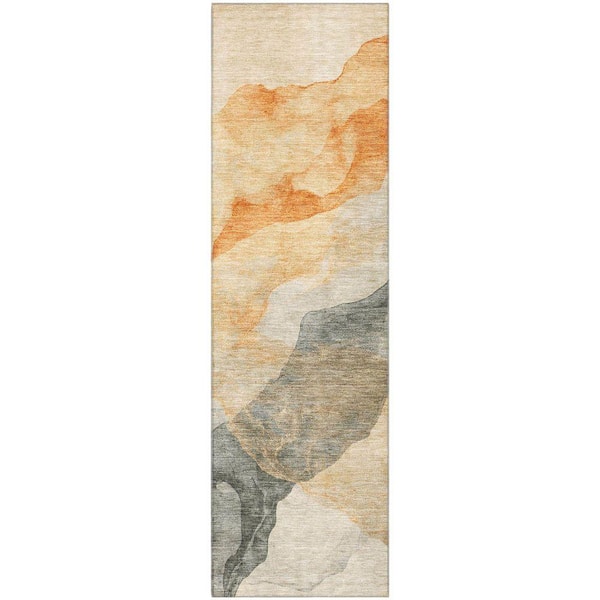 Mayfield Premium Machine Washable Abstract AMF2109 Orange 2 ft. x 7 ft. Runner Rug