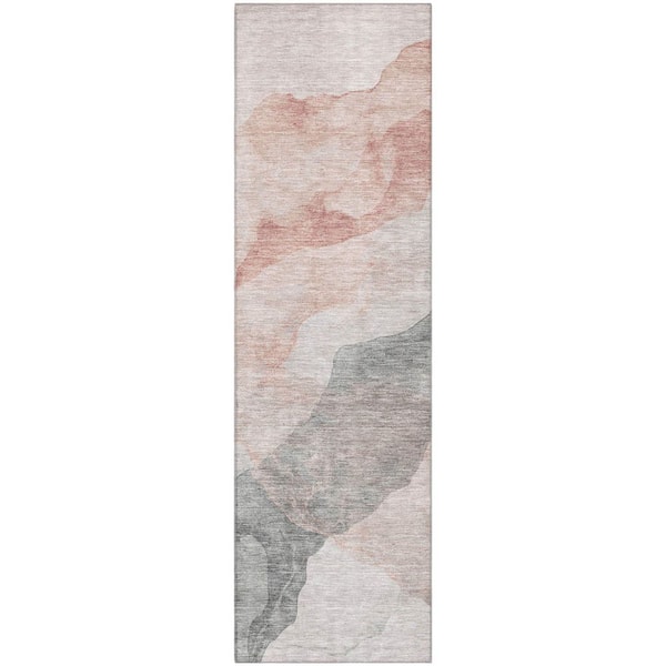 Mayfield Premium Machine Washable Abstract AMF2109 Salmon 2 ft. x 7 ft. Runner Rug