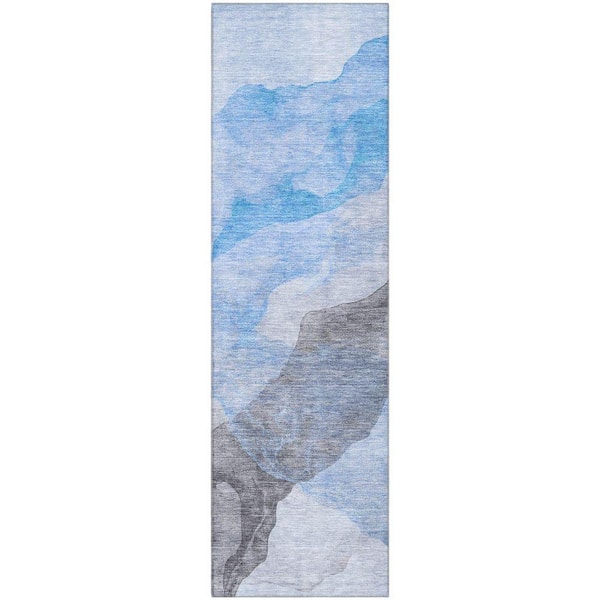 Mayfield Premium Machine Washable Abstract AMF2109 Sky 2 ft. x 7 ft. Runner Rug