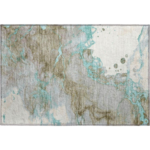 Mayfield Premium Machine Washable Abstract AMF2110 Teal 2 ft. x 3 ft. Accent Rug