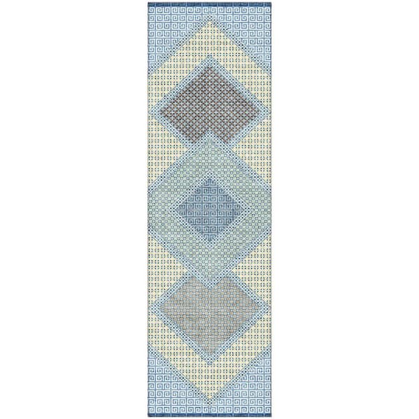 Mayfield Premium Machine Washable Abstract AMF2111 Denim 2 ft. x 7 ft. Runner Rug