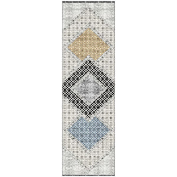 Mayfield Premium Machine Washable Abstract AMF2111 Gray 2 ft. x 7 ft. Runner Rug