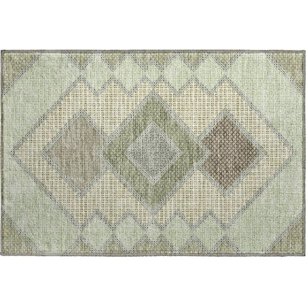 Mayfield Premium Machine Washable Abstract AMF2111 Green 2 ft. x 3 ft. Accent Rug