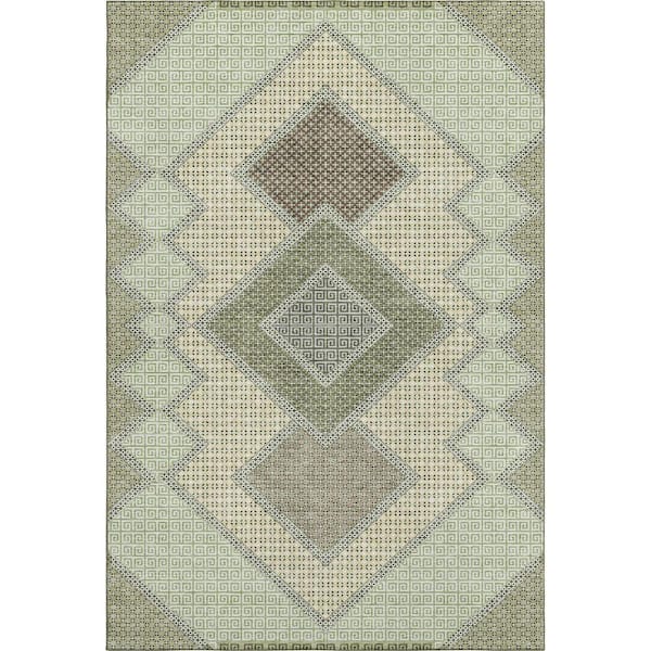 Mayfield Premium Machine Washable Abstract AMF2111 Green 9 ft. x 12 ft. Area Rug