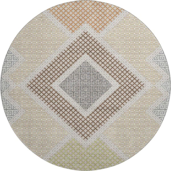 Mayfield Premium Machine Washable Abstract AMF2111 Pewter 8 ft. x 8 ft. Round Rug