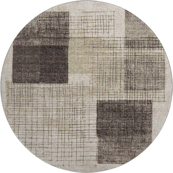 Mayfield Premium Machine Washable Abstract AMF2112 Brown 8 ft. x 8 ft. Round Rug