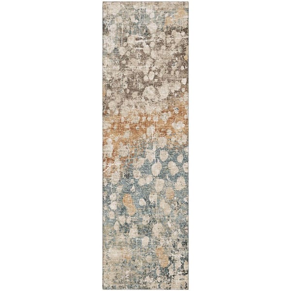 Mayfield Premium Machine Washable Abstract AMF2113 Putty 2 ft. x 7 ft. Runner Rug