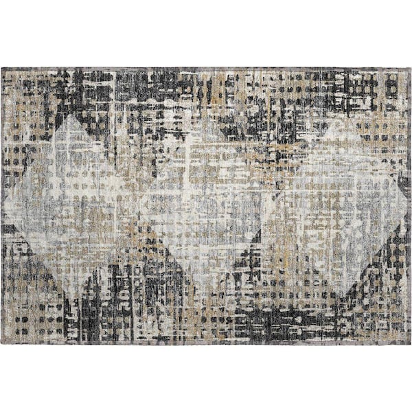 Mayfield Premium Machine Washable Abstract AMF2116 Black 2 ft. x 3 ft. Accent Rug