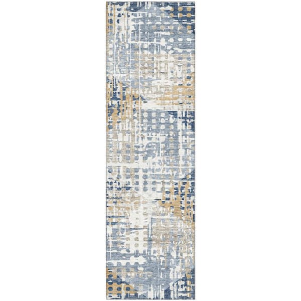 Mayfield Premium Machine Washable Abstract AMF2116 Navy 2 ft. x 7 ft. Runner Rug