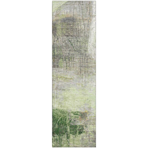Mayfield Premium Machine Washable Abstract AMF2117 Aloe 2 ft. x 7 ft. Runner Rug
