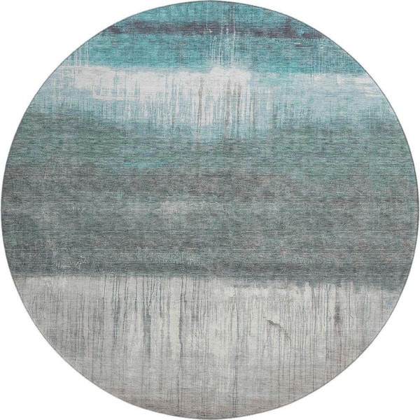 Mayfield Premium Machine Washable Abstract AMF2118 Teal 8 ft. x 8 ft. Round Rug