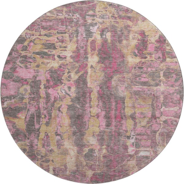 Mayfield Premium Machine Washable Abstract AMF2120 Blush 8 ft. x 8 ft. Round Rug