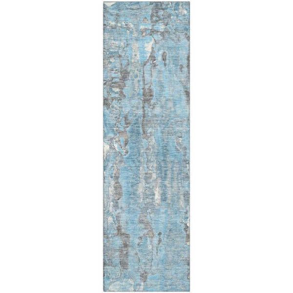 Mayfield Premium Machine Washable Abstract AMF2120 Denim 2 ft. x 7 ft. Runner Rug