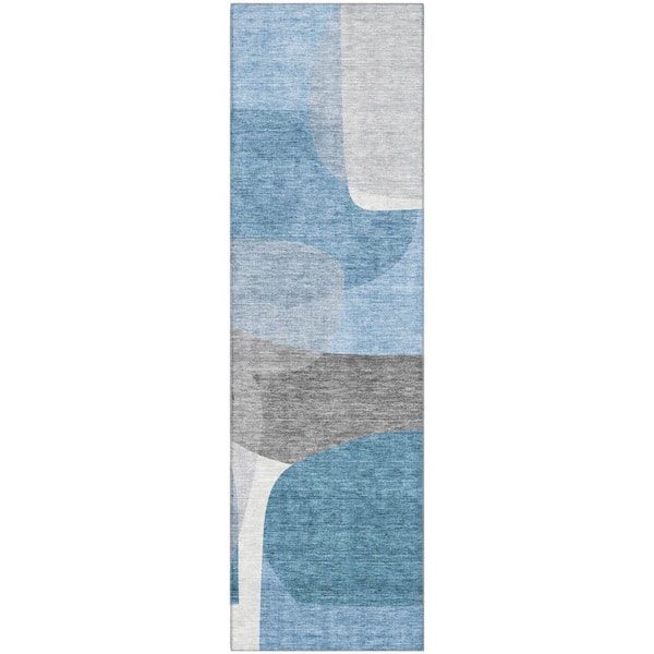 Mayfield Premium Machine Washable Abstract AMF2121 Denim 2 ft. x 7 ft. Runner Rug