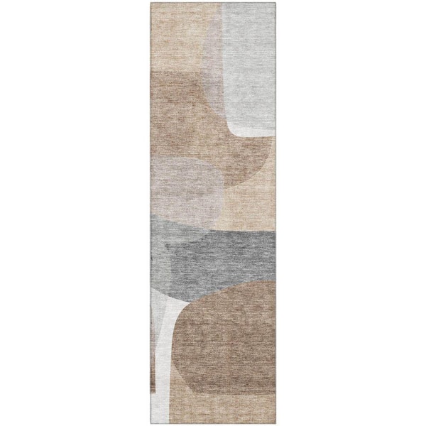 Mayfield Premium Machine Washable Abstract AMF2121 Mocha 2 ft. x 7 ft. Runner Rug