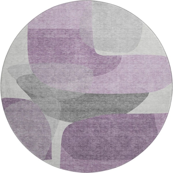 Mayfield Premium Machine Washable Abstract AMF2121 Purple 8 ft. x 8 ft. Round Rug