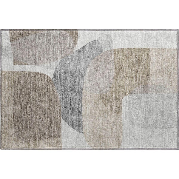 Mayfield Premium Machine Washable Abstract AMF2121 Taupe 2 ft. x 3 ft. Accent Rug