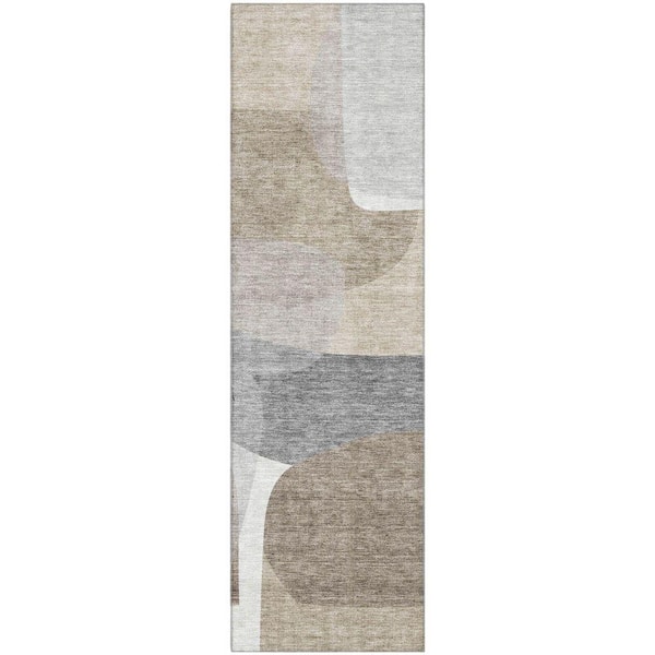 Mayfield Premium Machine Washable Abstract AMF2121 Taupe 2 ft. x 7 ft. Runner Rug