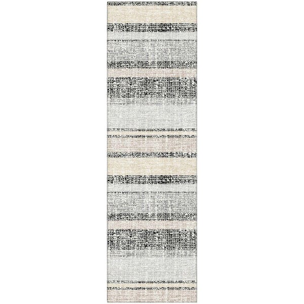 Mayfield Premium Machine Washable Abstract AMF2122 Black 2 ft. x 7 ft. Runner Rug
