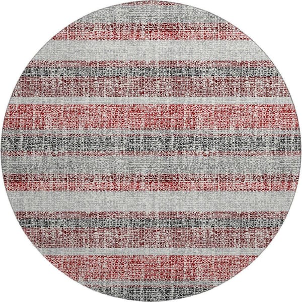 Mayfield Premium Machine Washable Abstract AMF2122 Burgundy 8 ft. x 8 ft. Round Rug