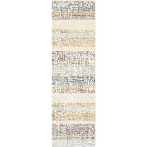 Mayfield Premium Machine Washable Abstract AMF2122 Gold 2 ft. x 7 ft. Runner Rug