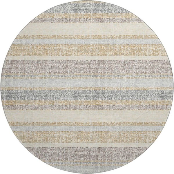 Mayfield Premium Machine Washable Abstract AMF2122 Gold 8 ft. x 8 ft. Round Rug