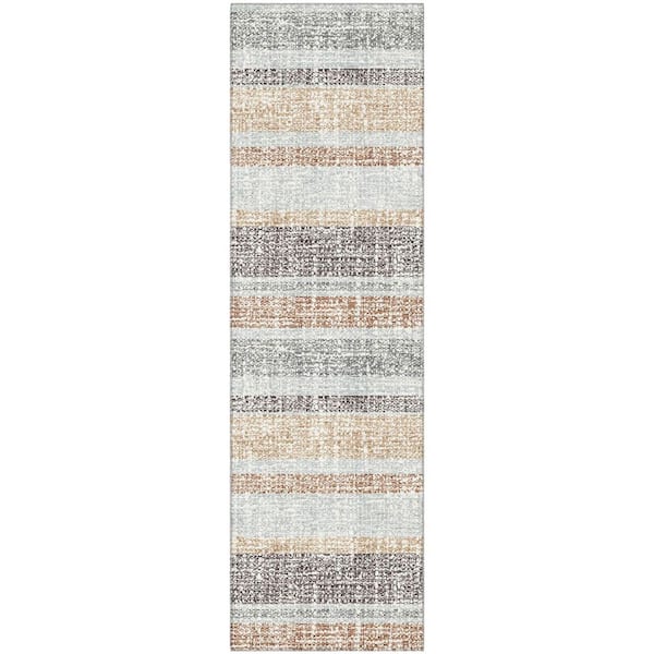 Mayfield Premium Machine Washable Abstract AMF2122 Gray 2 ft. x 7 ft. Runner Rug