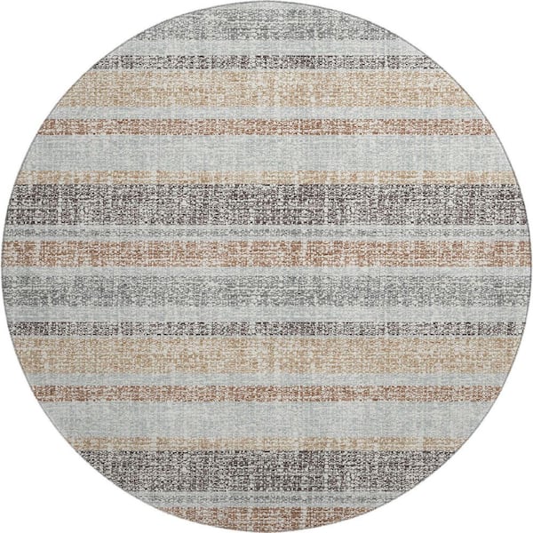 Mayfield Premium Machine Washable Abstract AMF2122 Gray 8 ft. x 8 ft. Round Rug