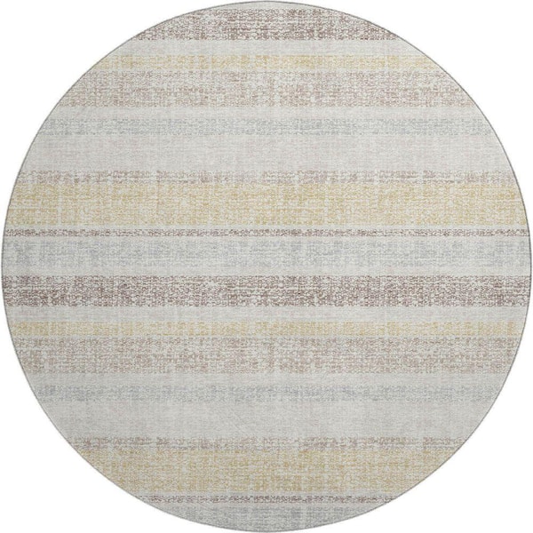 Mayfield Premium Machine Washable Abstract AMF2122 Ivory 8 ft. x 8 ft. Round Rug