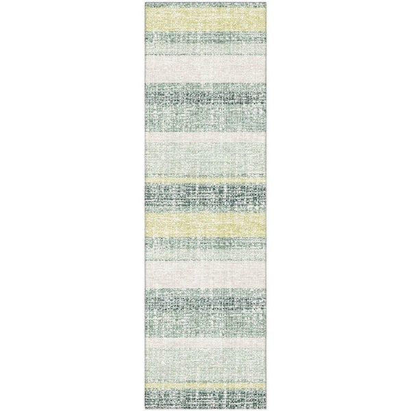Mayfield Premium Machine Washable Abstract AMF2122 Seafoam 2 ft. x 7 ft. Runner Rug