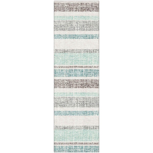 Mayfield Premium Machine Washable Abstract AMF2122 Teal 2 ft. x 7 ft. Runner Rug
