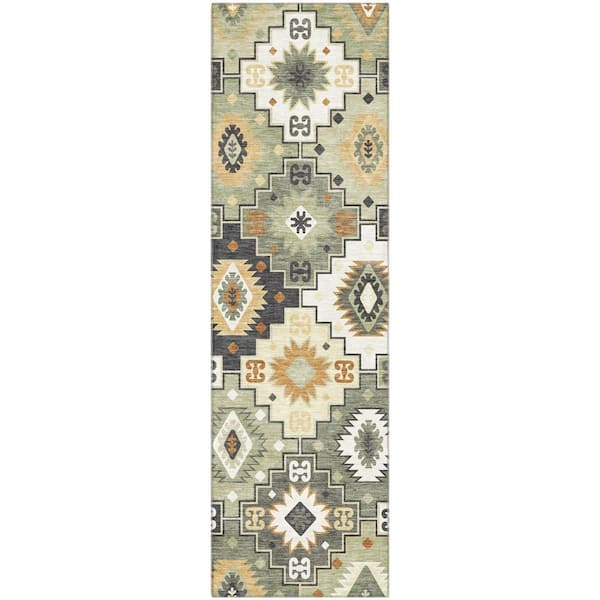 Mayfield Premium Machine Washable Abstract AMF2123 Fern 2 ft. x 7 ft. Runner Rug