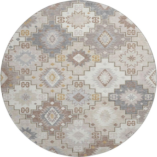 Mayfield Premium Machine Washable Abstract AMF2123 Ivory 8 ft. x 8 ft. Round Rug