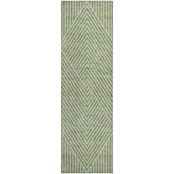 Mayfield Premium Machine Washable Abstract AMF937 Aloe 2 ft. 3 in. x 7 ft. 6 in. Runner Rug