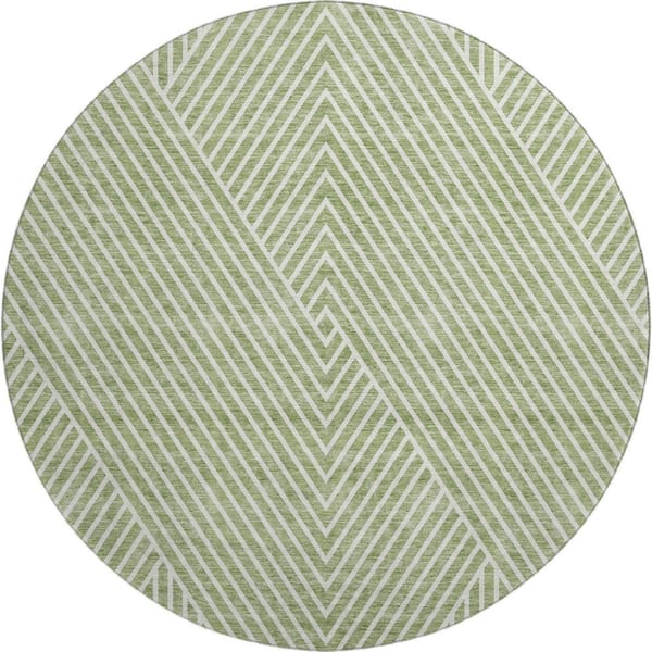 Mayfield Premium Machine Washable Abstract AMF937 Aloe 8 ft. x 8 ft. Round Rug