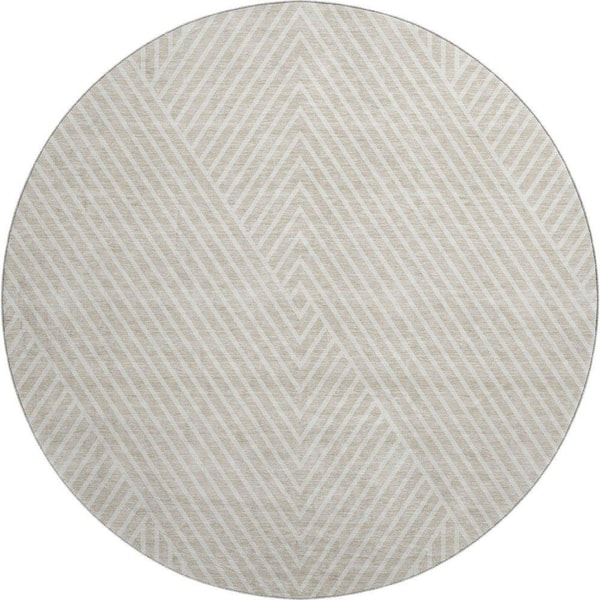 Mayfield Premium Machine Washable Abstract AMF937 Beige 8 ft. x 8 ft. Round Rug