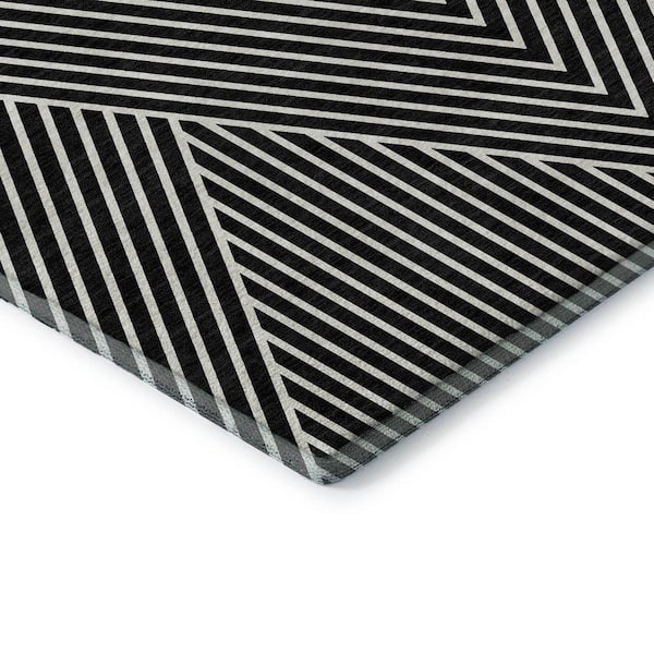 Mayfield Premium Machine Washable Abstract AMF937 Black 5 ft. x 7 ft. 6 in. Area Rug